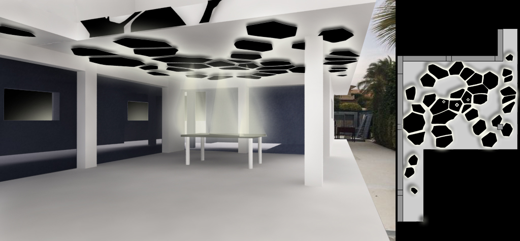 El proyecto trabaja alrededor de una vivienda unifamiliar ya existente ubicada en Elche, una vivienda sin personalidad propia. Un edificio de dos plantas compuesto por volúmenes contundentes, pesados y descontextualizados respecto a su más inmediato entorno. La propuesta trata de crear un contexto para vivienda, convirtiéndola mínimamente y trabajando parte de sus superficies externas. Un contexto generado a través de la creación de un entorno basado en la naturaleza, que haga más ligera la parte superior de la vivienda y que arraigue al suelo la parte baja, que pese sin pesar y que la parcela delimite su carácter exterior marcado por el cielo estrellado.